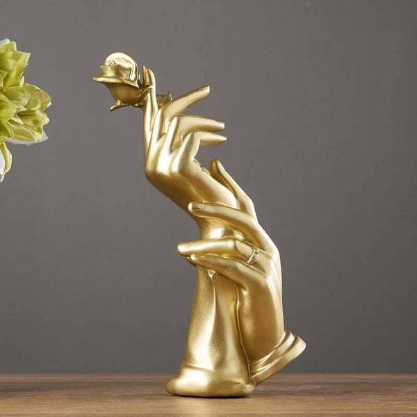 Elegant and romantic gold hand sculpture. Great addition to any rooms decor especially living room or foyer area!