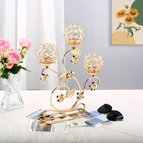1pc 3 Arms Golden Metal Candle Holder Candelabra, Vintage Flower Shaped Candlestick for Table Centerpiece